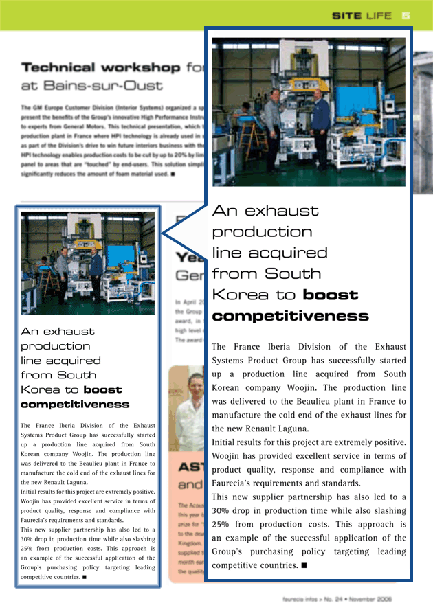 Faurecia Infos Magazine Praises Woojin Engineering Exhaust Product Line and Cost Savings